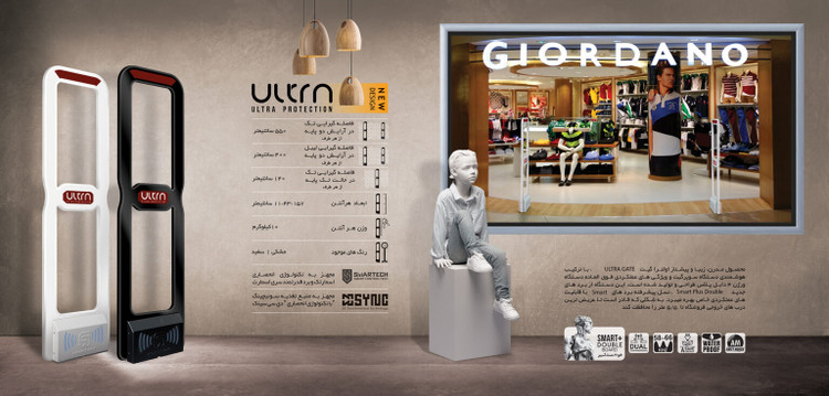 محصول مدرن، زیبا و پیشتاز اولترا گیت (Ultra Gate)، با ترکیب هوشمندی دستگاه سوپرگیت و ویژگی های عملکردی فوق العاده دستگاه ورژن 4 دابل پلاس طراحی و تولید شده است. این دستگاه از برد های جدید Smart Plus Double ، نسل پیشرفته برد های Smart با قابلیت های عملکردی خاص بهره میبرد. به شکلی که قادر است تا عریض ترین درب های خروجی فروشگاه تا 5/5متر ! را محافظت کند.